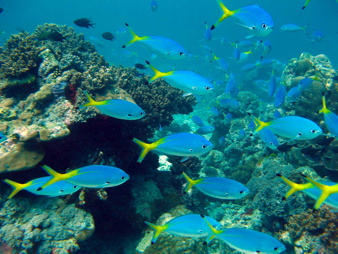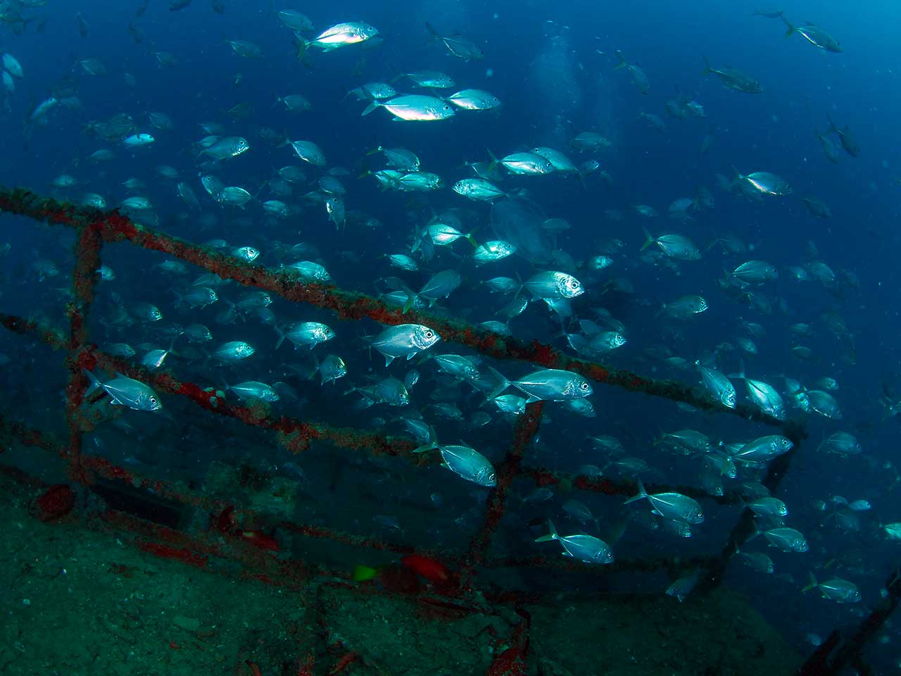 La visibilité est ainsi parfois réduite, mais la faune est abondante avec de nombreuses tortues, mérous, raies manta, thons, murènes, carangues et requins dans le bleu.