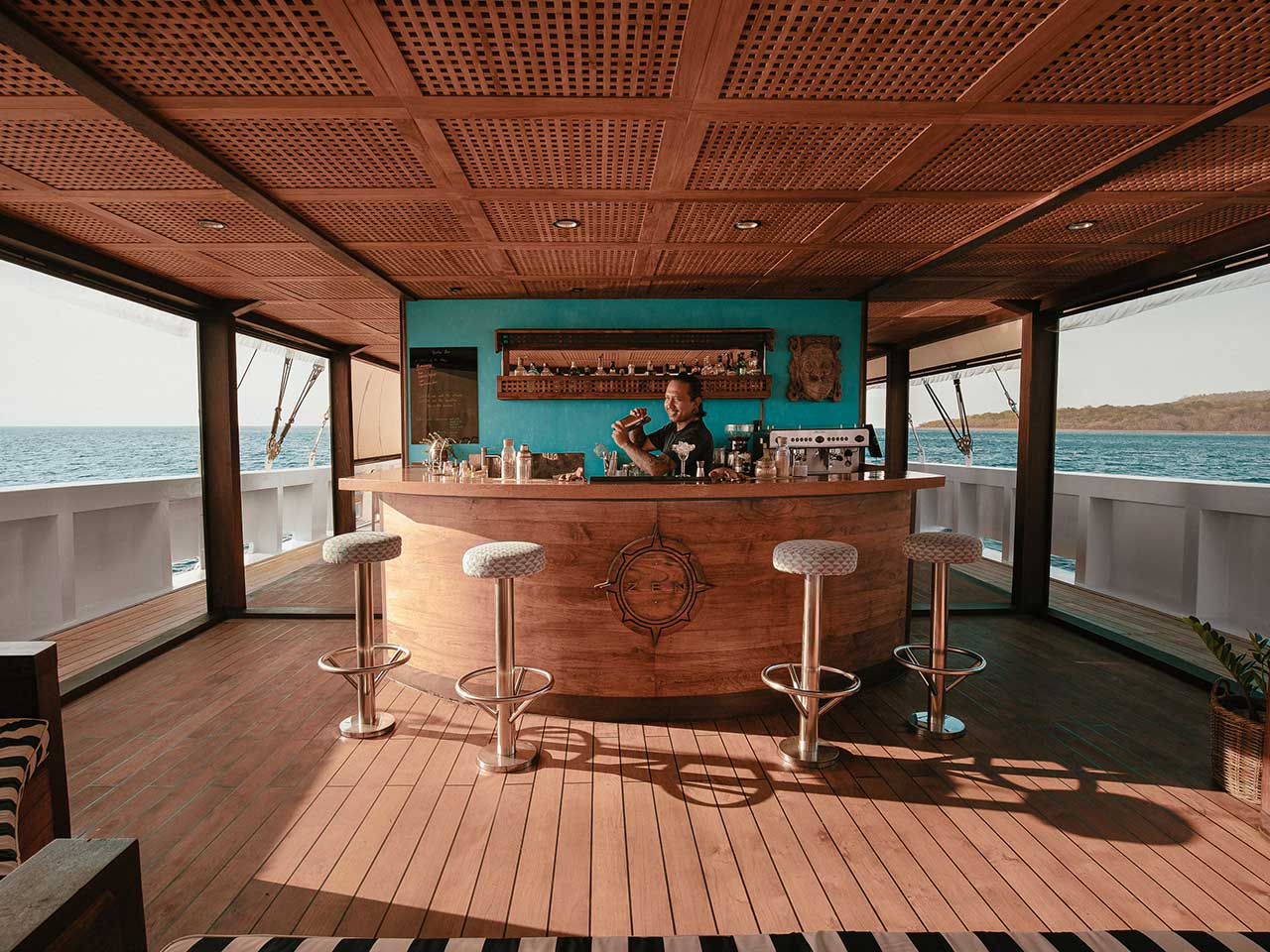 Si vous souhaitez un peu plus d’ambiance, rendez-vous au bar du pont principal pour boire un cocktail proposé par l’un des deux barmans à bord.