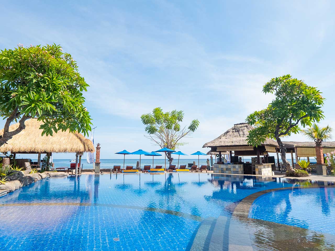 L’Amertha Bali Villas dispose d’un restaurant et d’une piscine en bord de plage, d’un centre de plongée intégré et d’un spa aux massages bienfaisants. De nombreuses activités sont proposées, cours de cuisine, de yoga, excursions ou encore visite de temples. Le resort est à deux pas de Pemuteran et de l’île de Menjangan, deux sites incontournables pour un séjour plongée réussi à Bali.