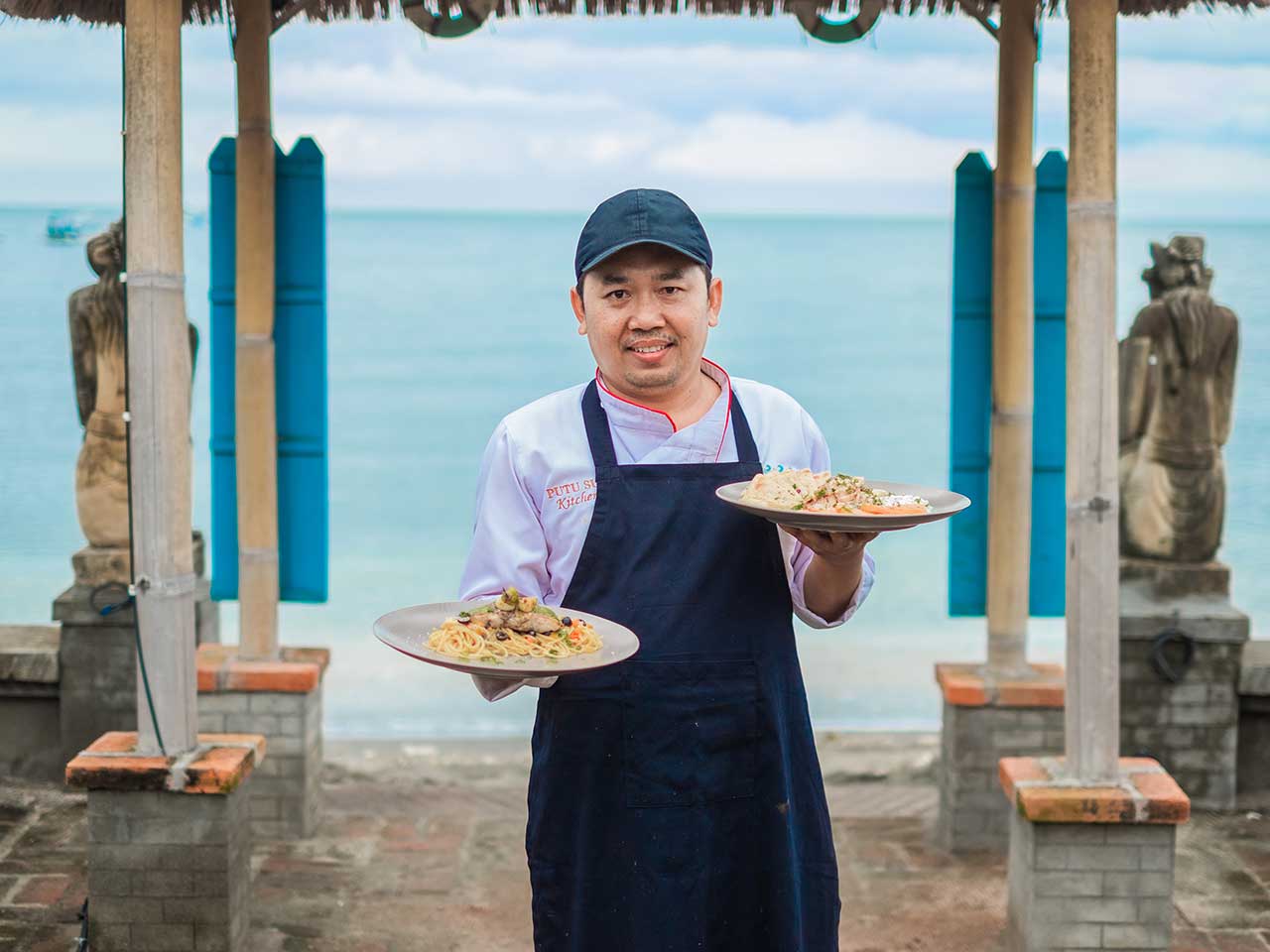 Les options sont multiples pour occuper vos journées. Cours de Yoga ou de cuisine, massages, excursions dans la forêt primaire du Parc national de Barat, visite guidée de temples sacrés, confection des offrandes ou sortie snorkeling, laissez-vous guider par votre inspiration.