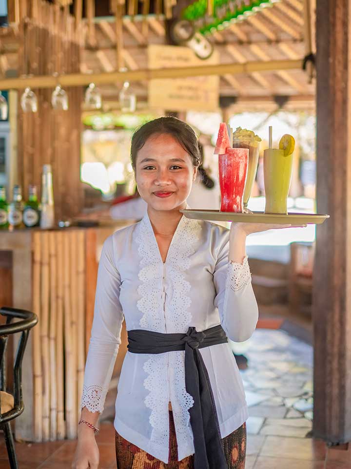 La charmante station de Pemuteran permet d’apprécier sereinement une autre facette de Bali, au calme loin des grandes zones touristiques. Vous pourrez ainsi profiter de petits restaurants locaux à quelques pas de l’hôtel, en bord de plage ou dans les rues adjacentes.