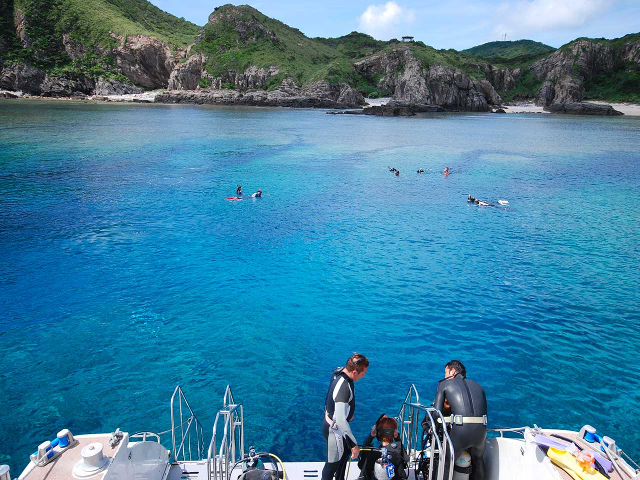 Seasir est un opérateur historique de la plongée au Japon. Très professionnelle et bien organisée, l’équipe Seasir connaît parfaitement les spots de plongée et de snorkeling aux îles Kerama. Il est possible de venir plonger depuis Naha pour la journée, nous avons choisi de vous proposer de séjourner sur place, pour vivre l’expérience la plus agréable et dépaysante possible. Les sites de plongée se trouvent entre 5 et 10 minutes de bateau. Baptêmes et formations sont possibles, mais la barrière de la langue peut être une difficulté. Les palanquées sont organisées par niveau, et le centre de plongée propose jusqu’à 3 plongées par jour, ainsi que des plongées de nuit.