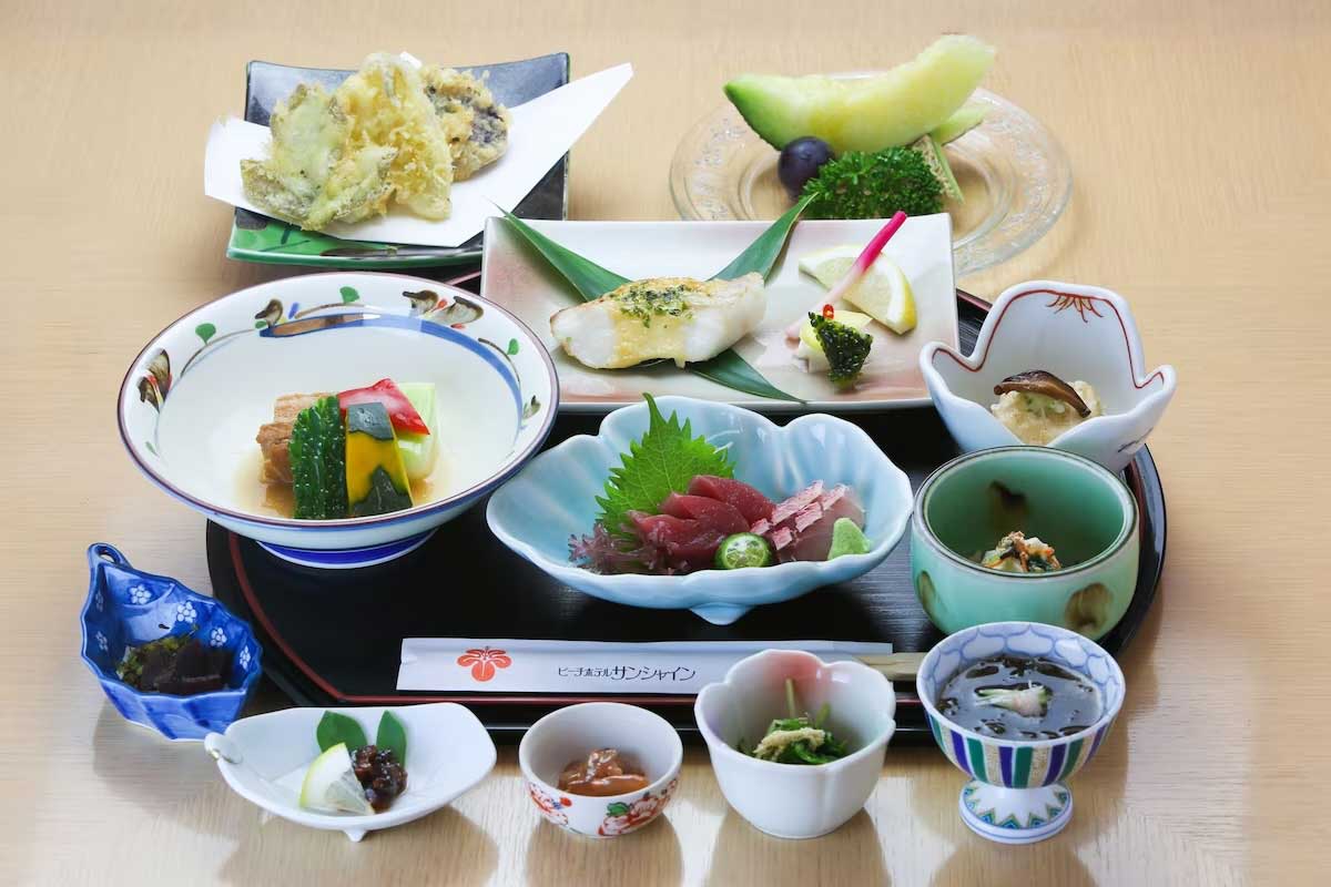 Le Beach Hotel Sunshine dispose de deux restaurants. Les propositions du menu font la part belle aux produits locaux et aux recettes typiquement japonaises.