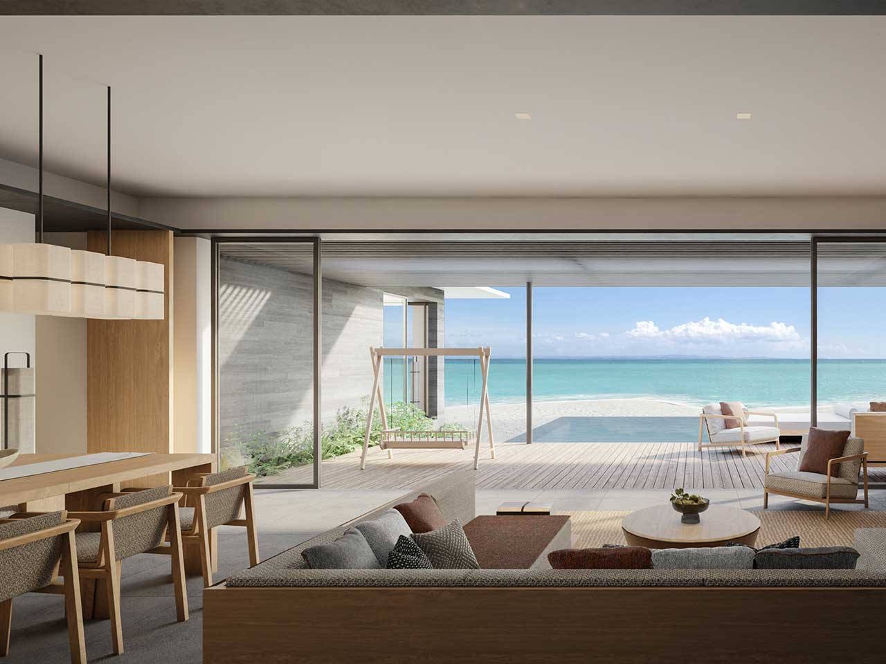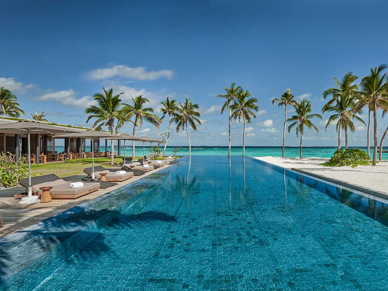 25 Beach Pool Villas se trouvent du côté Sud-Est de l’île avec une très large portion de plage.