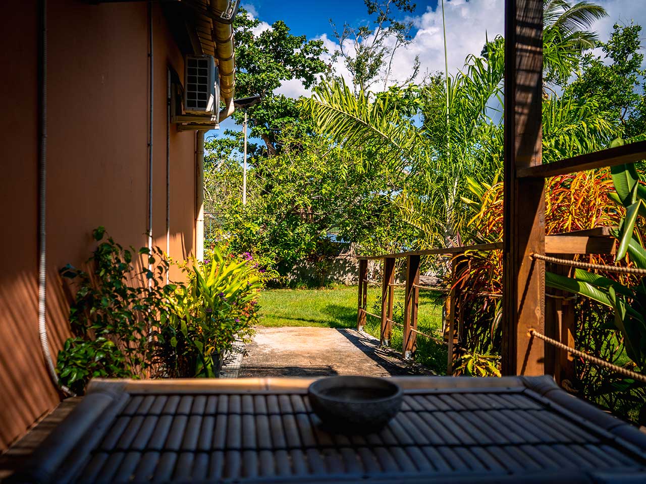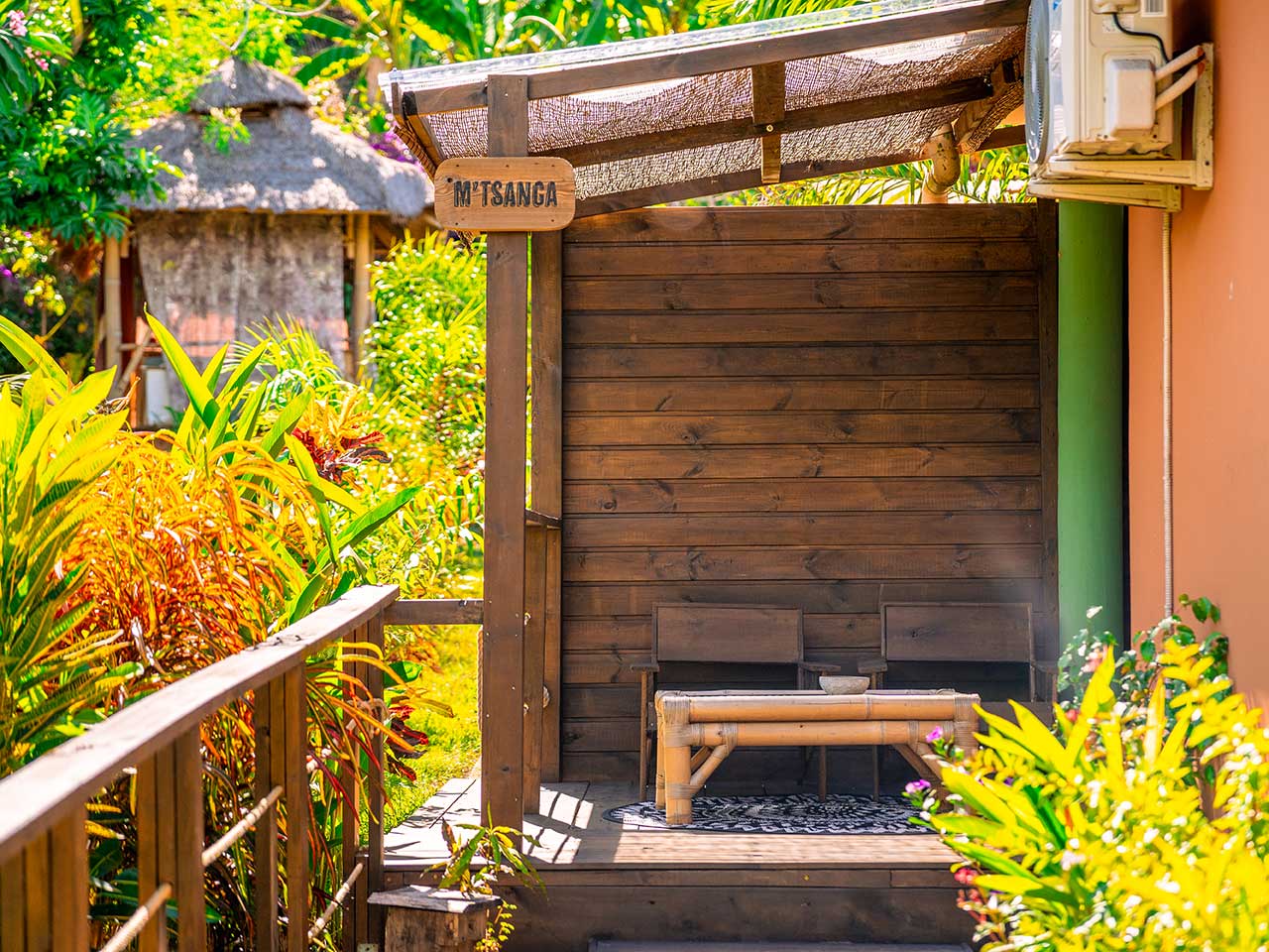 Le gîte est très bien situé pour ceux qui souhaitent découvrir cette partie authentique de Mayotte, au cœur d’un jardin luxuriant où se mêlent makis, roussettes et geckos au milieu des papayers, ananas et arbres à pain.