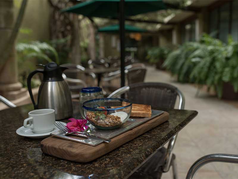 Chaque matin, installez-vous sur l’une des tables extérieures pour profiter de votre petit-déjeuner inclus.