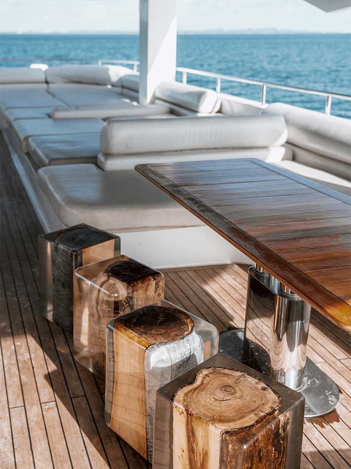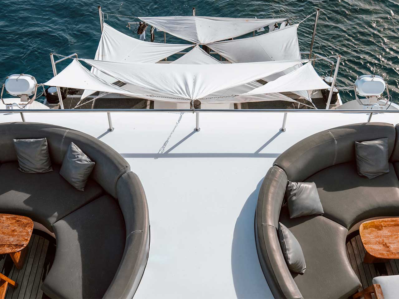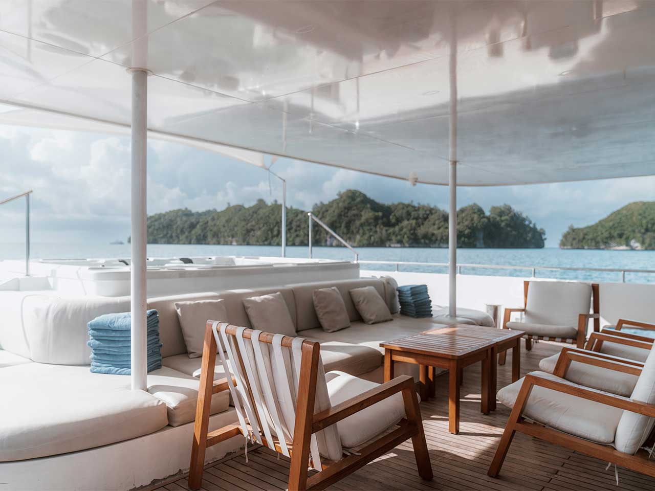 Le sundeck est en grande partie couvert et équipé de transats et de sofas. Vous pourrez profiter d’un moment de repos et admirer la vue imprenable sur Palau.