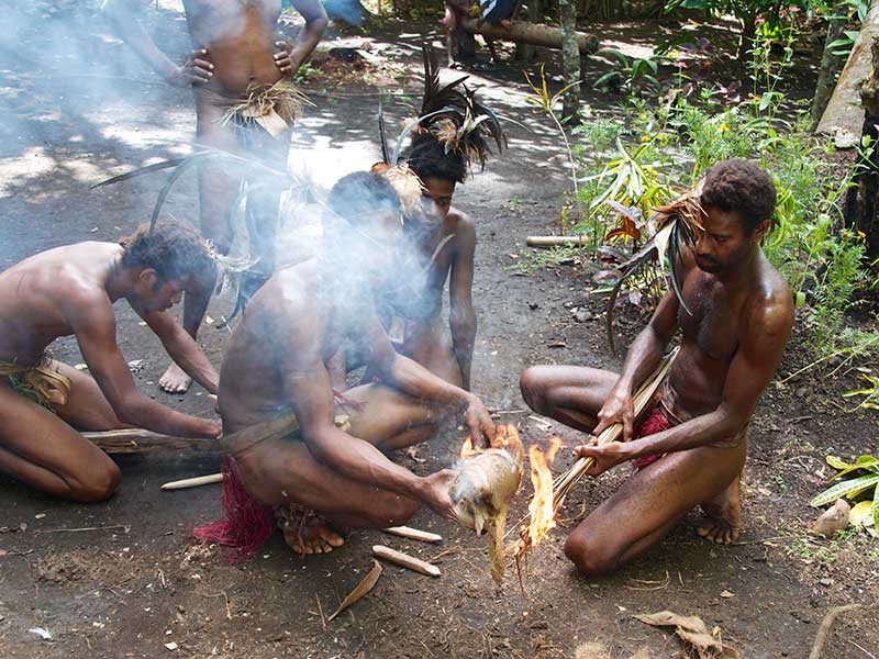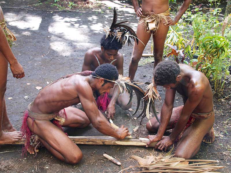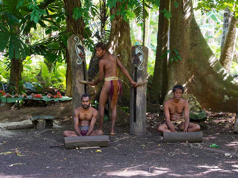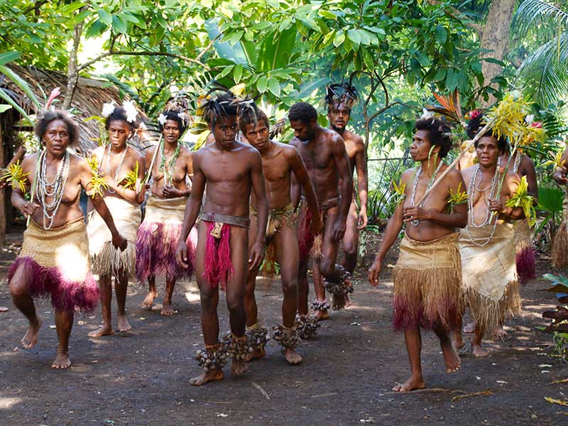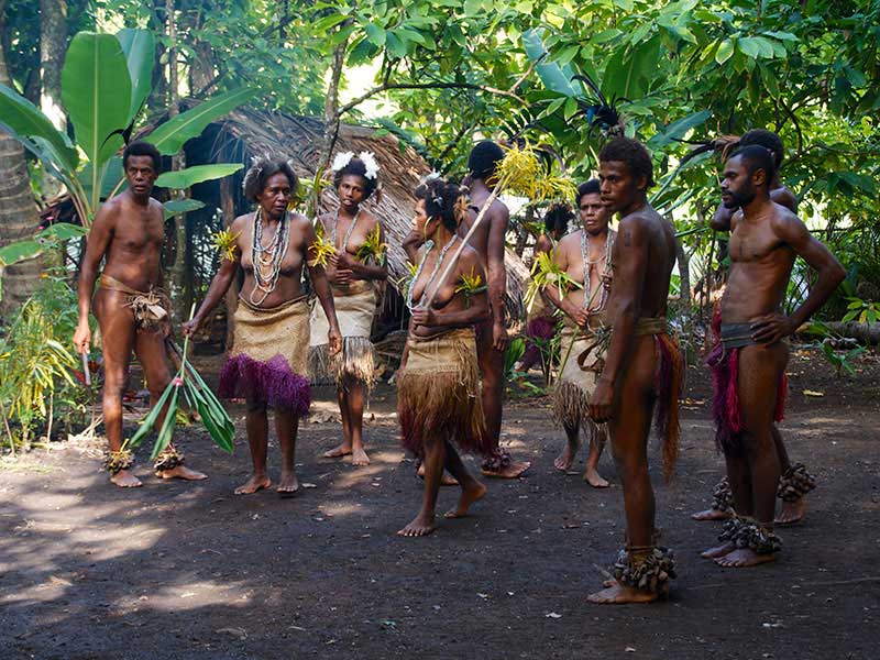 Le chef vous accueillera, et après vous avoir souhaité la bienvenue, il vous parlera de la vie de la tribu, ses traditions et son histoire. Vous assisterez à quelques danses coutumières par les hommes d’abord, puis la danse des fleurs par les femmes. Vous assisterez ensuite à des démonstrations traditionnelles sur la vie quotidienne : la cuisine des produits locaux, notamment le fameux « lap-lap », le dessin sur sable, l’allumage du feu à l’ancienne, le tressage des végétaux pour en faire des toits, paniers, ustensiles de cuisine, etc. La visite se terminera par une danse traditionnelle où hommes et femmes danseront ensemble.
